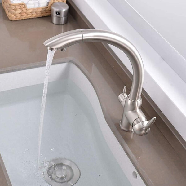 Αυτή η μπαταρία πάγκου κουζίνας διαθέτει τρίοδο σχεδιασμό για τη σύνδεση με φίλτρο νερού και το δίκτυο παροχής ζεστού και κρύου νερού. Έτσι, μπορείτε να απολαμβάνετε καθαρό, φιλτραρισμένο νερό και να επιλέξετε παράλληλα ανάμεσα σε ζεστό και κρύο νερό με τους διακόπτες.