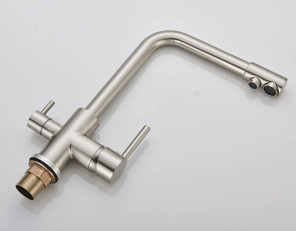 Αυτή η εκπληκτική μπαταρία πάγκου κουζίνας διαθέτει τρίοδο σχεδιασμό για τη σύνδεση με φίλτρο νερού και το δίκτυο παροχής ζεστού και κρύου νερού. Έτσι, μπορείτε να απολαμβάνετε καθαρό, φιλτραρισμένο νερό και να επιλέξετε παράλληλα ανάμεσα σε ζεστό και κρύο νερό με τους διακόπτες.