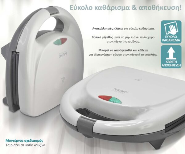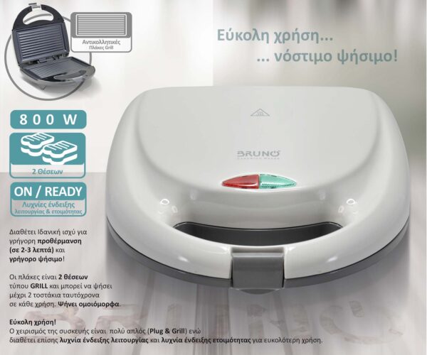BRUNO τοστιέρα BRN-0166, 2 θέσεων, 800W, αντικολλητικές πλάκες, λευκή