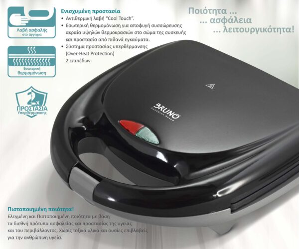 BRUNO τοστιέρα BRN-0167, 2 θέσεων, 800W, αντικολλητικές πλάκες, μαύρη