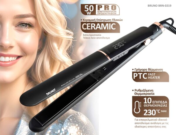 BRUNO BRN-0219 Ισιωτική πρέσα μαλλιών με κεραμικές πλάκες, 50W, ψηφιακή ένδειξη, black-copper