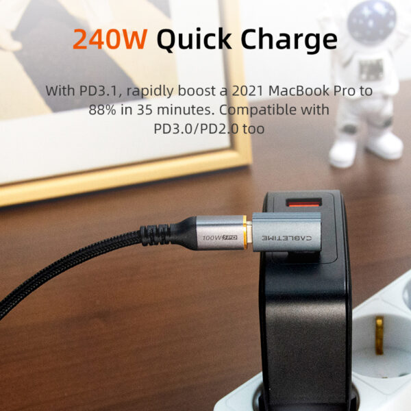 CABLETIME αντάπτορας USB-C CT-OTG42-AG, γωνιακός, USB4, 240W, 40Gbps, 8K, γκρι