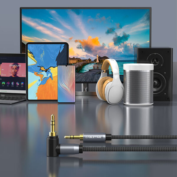 CABLETIME καλώδιο ήχου 3.5mm CT-P11RGN, γωνιακό, AUX, 1.8m, μαύρο