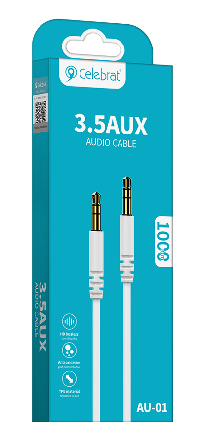 CELEBRAT καλώδιο ήχου 3.5mm AU-01, AUX, 1m, λευκό