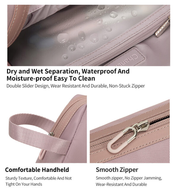Γυναικείο νεσεσέρ Chantria, ιδανικό για ταξίδια και εκδρομές. Διαθέτει πολλαπλές εσωτερικές θέσεις για την τοποθέτηση προϊόντων περιποίησης και καλλυντικών αλλά και αδιάβροχη θήκη για τον διαχωρισμό των βρεγμένων αντικειμένων στο εσωτερικό του νεσεσέρ.