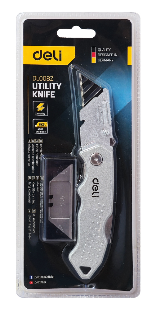 DELI κοπίδι DL008Z με ανταλλακτικές λεπίδες, μεταλλικό, 19mm, γκρι