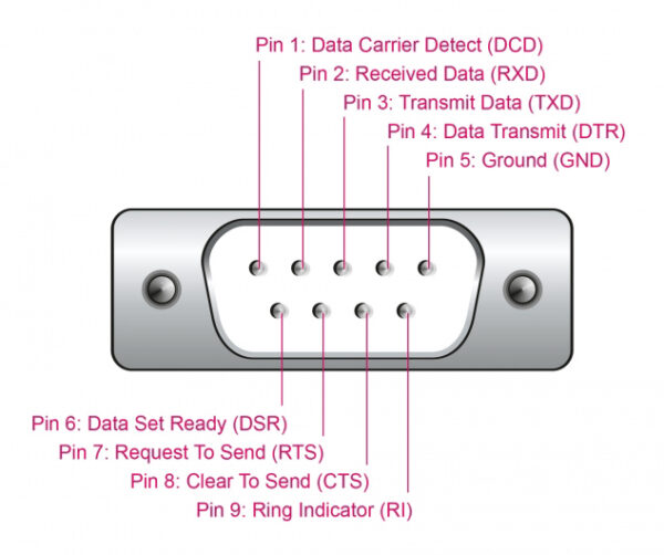 -signals: TxD, RxD, RTS, CTS, DTR, DSR, DCD, RI, GND