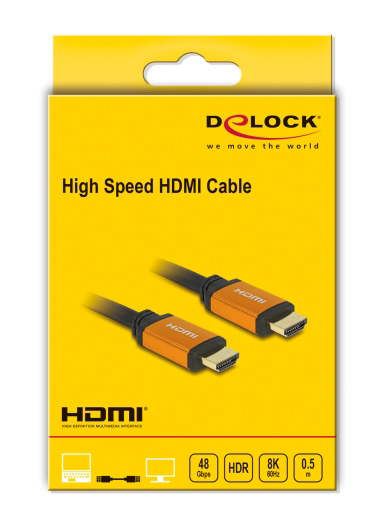 DELOCK καλώδιο HDMI 85726, 8K/60Hz, 48 Gbps, eARC, HDR, 0.50m, μαύρο