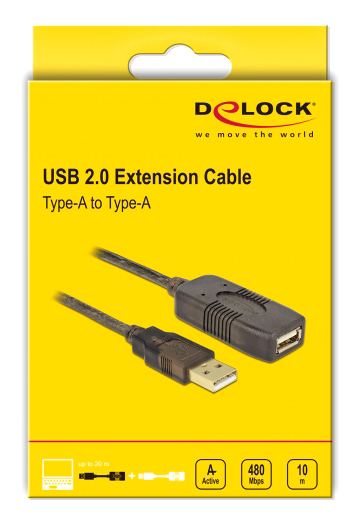 DELOCK καλώδιο USB 2.0 αρσενικό σε θηλυκό 82446, active, 10m, μαύρο
