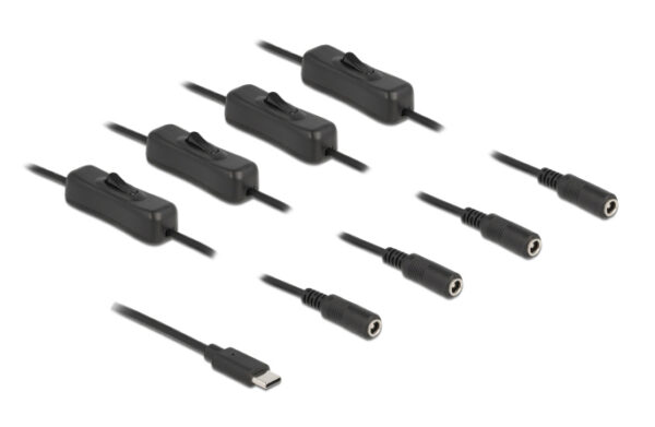 DELOCK καλώδιο USB Type-C σε 4x DC 5.5 x 2.1mm 86802, 1m, μαύρο