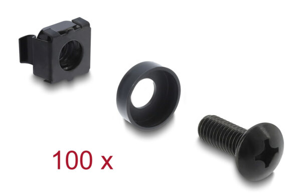 DELOCK σετ βίδες με παξιμάδια 42434 για rack, M6/16mm, μαύρο, 100τμχ