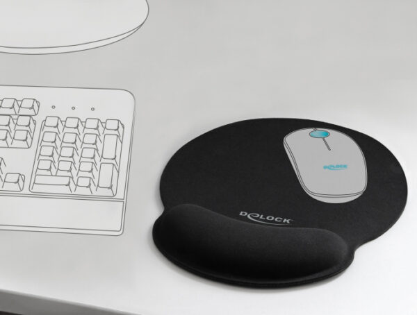 Εργονομικό mousepad της Delock με μαλακό μαξιλάρι, το οποίο εξασφαλίζει την σωστή στάση του καρπού κατά την εργασία στον υπολογιστή, για την αποφυγή καταπόνησης.