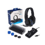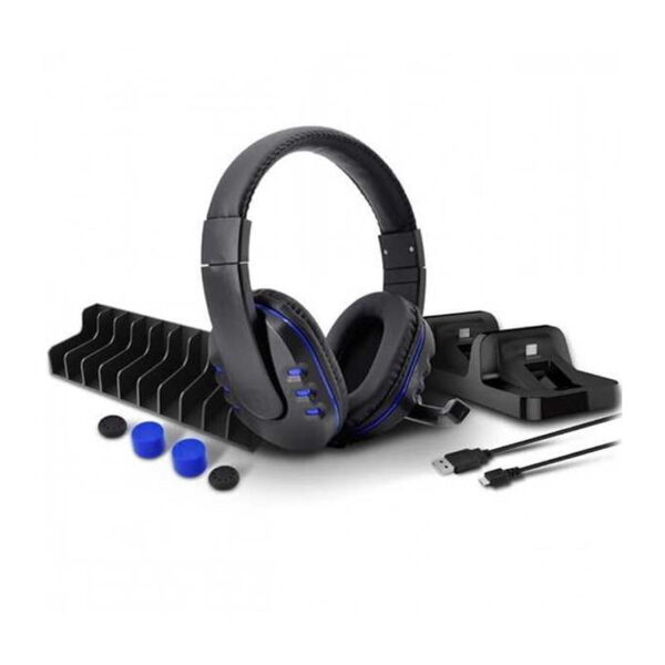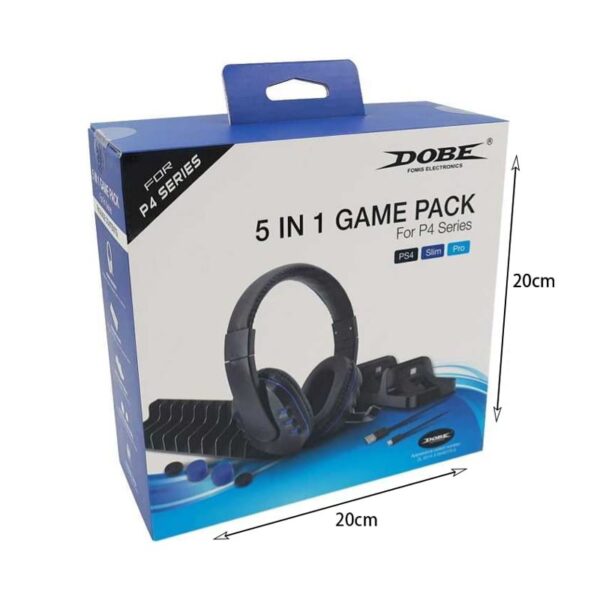 DOBE Σετ 5in1 PS4 με ακουστικά, βάση φόρτισης τηλεχειριστηρίων – 5in1 Game Pack for P-4 Series