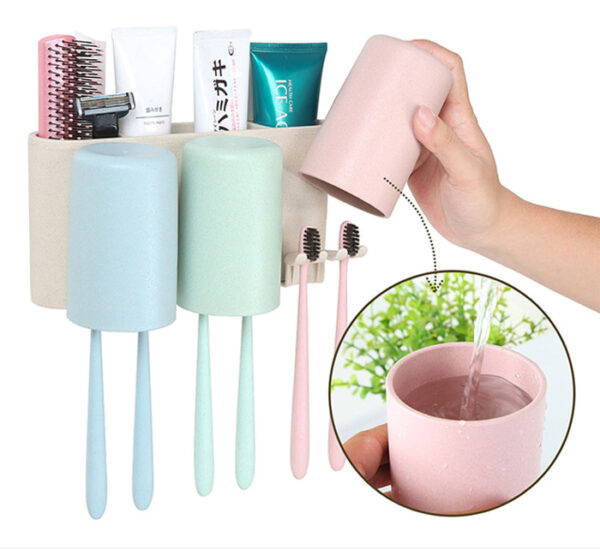 Βάση οδοντόβουρτσας με 3 ποτήρια της Ecoco και κομψή εμφάνιση, κατασκευασμένη από Eco-friendly υλικά. Τοποθετείται εύκολα στον τοίχο με αυτοκόλλητα τα οποία αποσπώνται από την βάση, διευκολύνοντας τον καθαρισμό της. Διαθέτει 3 ποτήρια και 3 θήκες όπου μπορούν να τοποθετηθούν οδοντόβουρτσες, οδοντόκρεμες ή αλλά αντικείμενα υγιεινής.