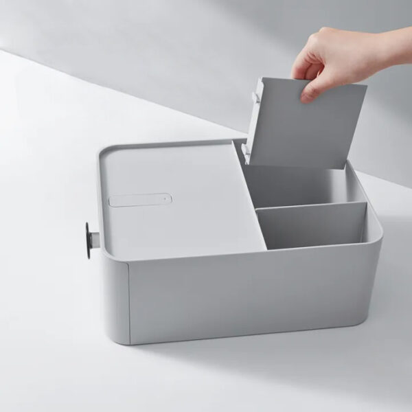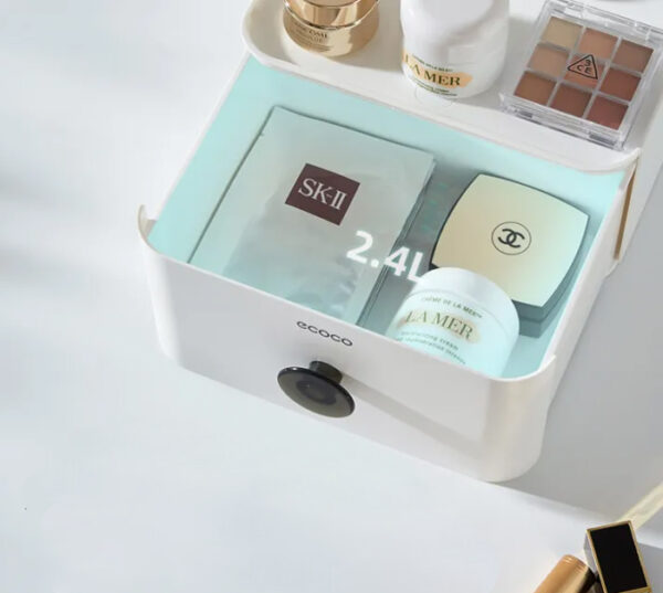 Πολυχρηστική θήκη οργάνωσης αντικειμένων της ECOCO. Εξοπλίζεται με συρτάρι, stand για smartphone και 3 ανοιχτά διαμερίσματα αποθήκευσης τα οποία μπορούν να προσαρμοστούν ανάλογα με τις ανάγκες σας, καθώς τα διαχωριστικά τους είναι μετακινούμενα και αφαιρούμενα.