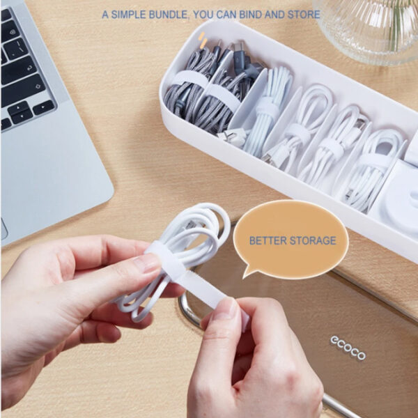 ECOCO κουτί οργάνωσης καλωδίων E2206 με ταινία τύπου velcro, λευκό