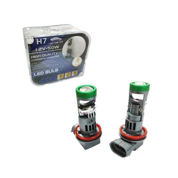 Σετ λαμπών LED H7 για αυτοκίνητο, ισχύος 50W και τάσης 12V, με υψηλή φωτεινότητα και καθαρό λευκό φως. Εξασφαλίζουν καθαρότερη και πιο αποδοτική φωταγώγηση σε σχέση με τις κοινές λάμπες αλογόνου.