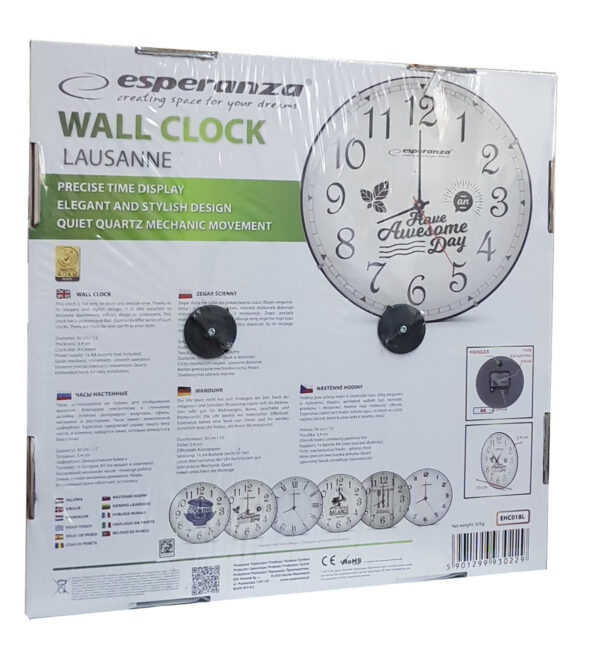 ESPERANZA ρολόι τοίχου Lausanne EHC018L, 30cm, λευκό