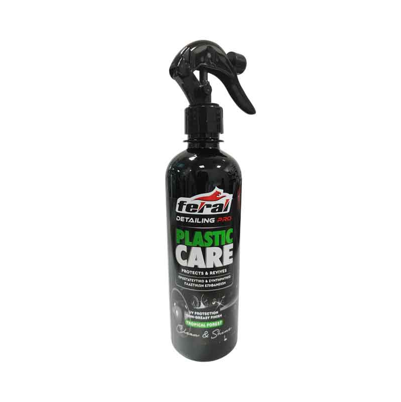 Το γυαλιστικό ταμπλό Feral, είναι ένα προϊόν με μοναδική σύνθεση που γυαλίζει, προστατεύει και συντηρεί τα πλαστικά μέρη του αυτοκινήτου σας χαρίζοντας εκπληκτική λάμψη, και μοναδικό άρωμα. Τα αντιστατικά συστατικά που περιέχει καθώς και οι εξαιρετικής ποιότητος σιλικόνες απωθούν την σκόνη παρατείνοντας έτσι την λάμψη της επιφάνειας. Προστατεύει από το ξεθώριασμα, το σκάσιμο και την αφυδάτωση των εσωτερικών επιφανειών του αυτοκινήτου. Ιδανικό για χρήση σε βινύλια, πλαστικά και ελαστικά μέρη όπως ταμπλό αυτοκινήτων, φορτηγών, λεωφορείων και προφυλακτήρες. Οδηγίες χρήσης: 1)Ανακινήστε καλά το μπουκάλι και έπειτα ψεκάστε ομοιόμορφα την πλαστική επιφάνεια από απόσταση 15-20 εκ. 2)Σκουπίστε το με μαλακό πανί ώστε γυαλίσει. 3)Επαναλάβετε όσο συχνά επιθυμείτε.