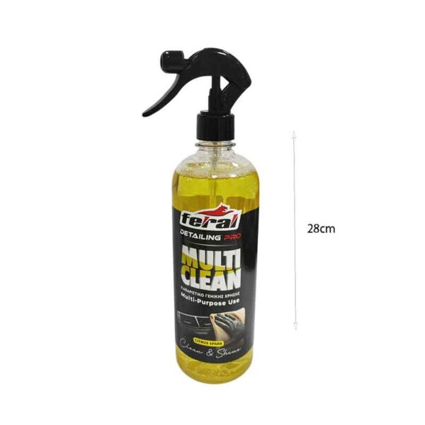 Το Feral Multi Clean είναι ένα πανίσχυρο καθαριστικό γενικής χρήσης με αντιστατικούς παράγοντες, σχεδιασμένο για να απομακρύνει ακόμη και τους πιο δύσκολους λεκέδες. Κατάλληλο για χρήση στο αυτοκίνητο αλλά και στο σπίτι, προσφέρει άψογη καθαριότητα και φρεσκάδα.