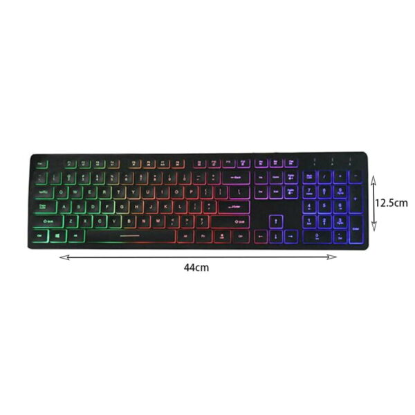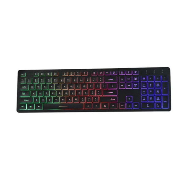 Gaming πληκτρολόγιο της εταιρείας Andowl με RGB φωτιζόμενα πλήκτρα σε γλώσσα αγγλικά US. Ως full size, διαθέτει όλα τα πλήκτρα ενός τυπικού keyboard μαζί με τα αριθμητικά στο δεξί μέρος του.