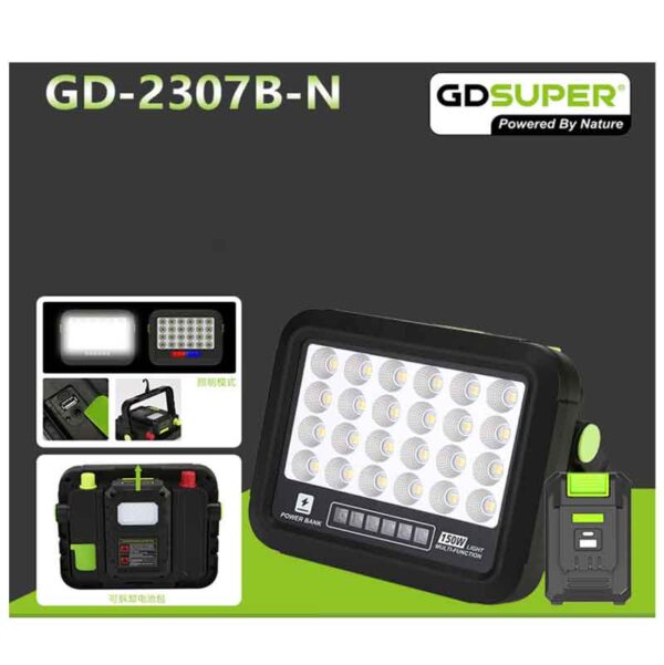 GDSuper Ηλιακό Πακέτο Φωτισμού Προβολέας / Power Bank 300W GD-2308B-N