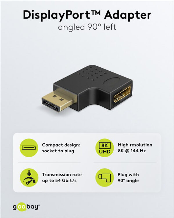 GOOBAY αντάπτορας DisplayPort 77132, 8K/144Hz, γωνιακός, μαύρος