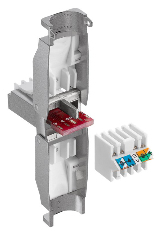 -υποδοχή RJ45 με colour-coded επαφές καλωδίου σύμφωνα με το EIA/TIA 568