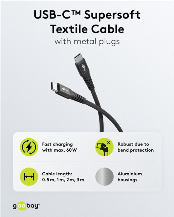 Καλώδιο φόρτισης και μεταφοράς δεδομένων USB-C σε USB-C της Goobay.