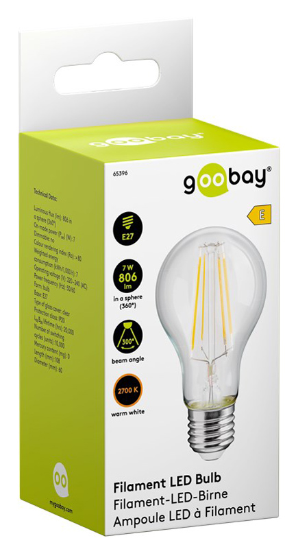 GOOBAY LED λάμπα bulb 65396, E27, Filament, 7W, 2700K, 806lm