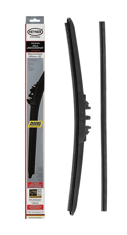 Υαλοκαθαριστήρας αυτοκινήτου της HEYNER με NANO graphite τεχνολογία που προσφέρει ελαστικότητα και αντοχή για μακροχρόνια χρήση.