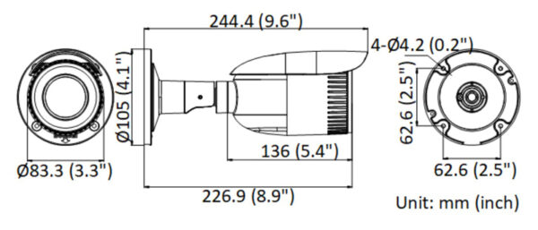 Camera Dimension: Φ 105 mm ? 244.4 mm