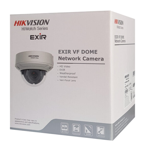 Δικτυακή κάμερα POE IP της σειράς HiWatch από την HIKVISION, με varifocal φακό 2.8-12mm και ανάλυση 2K με αισθητήρα 4MP. Τα βίντεο που καταγράφονται αποθηκεύονται με κωδικοποίηση Η.265+ ενώ το εύρος υπερύθρων IR της κάμερας φτάνει έως 30m. Το σώμα της κάμερας είναι κατασκευασμένο από ανθεκτικό μεταλλικό υλικό με αδιάβροχη προστασία IP67 και αντοχή στα χτυπήματα IK10. Υποστηρίζει καταγραφή σε κάρτα micro SD έως 256GB (δεν συμπεριλαμβάνεται).