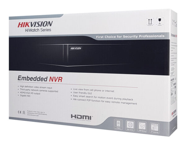 Καταγραφικό NVR της σειράς HiWatch από την HIKVISION. Υποστηρίζει έως και 4 κανάλια δικτυακών IP καμερών με ανάλυση εγγραφής έως 4MP και κωδικοποίηση βίντεο H.265+. Επιπλέον υποστηρίζει HDD έως 6ΤΒ.