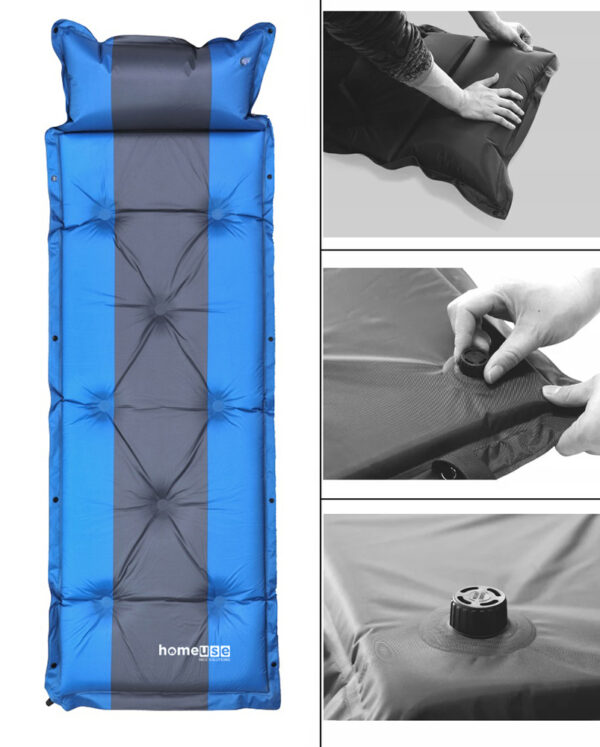 HOME USE αυτοφούσκωτο στρώμα HUH-0237 με μαξιλάρι, μονό, 192x60x3cm, μπλε/γκρι