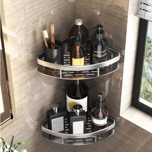 Γωνιακό ράφι τοίχου HOME USE, ιδανικό για την αποθήκευση μικροαντικειμένων στο μπάνιο ή την κουζίνα.