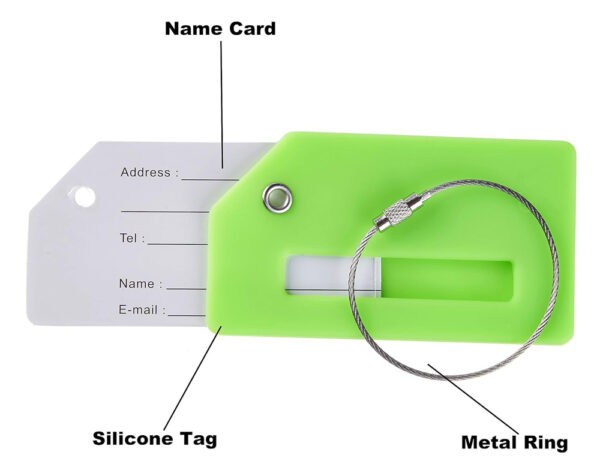 Η εξωτερική θήκη της ετικέτας είναι κατασκευασμένη από σιλικόνη και διαθέτει συρμάτινο λουρί για το κρέμασμα της στην βαλίτσα.