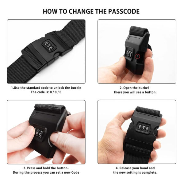 HOME USE ιμάντας βαλίτσας HUH-0240 με λουκέτο συνδυασμού, ρυθμιζόμενος, 2m, μαύρος