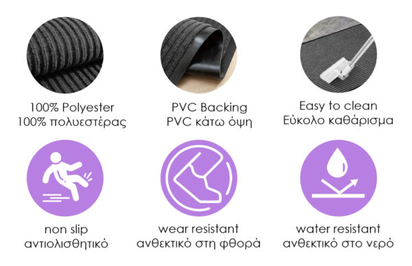 Πατάκι HOME USE για είσοδο πόρτας, με αντιολισθητική επιφάνεια, για επιπλέον σταθερότητα. Είναι κατασκευασμένο από πολυεστέρα με PVC επιφάνεια στο κάτω μέρος, που προσφέρουν εξαιρετική αντοχή στη φθορά και το νερό.
