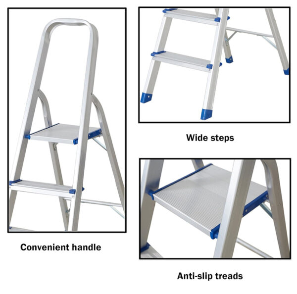 HOME USE σκάλα αλουμινίου HUH-0201 με 2+1 σκαλοπάτια, EN 131, 117.5cm