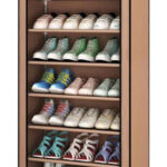 HOME USE υφασμάτινη παπουτσοθήκη HUH-0221 με 9 ράφια, 57x28x160cm, καφέ