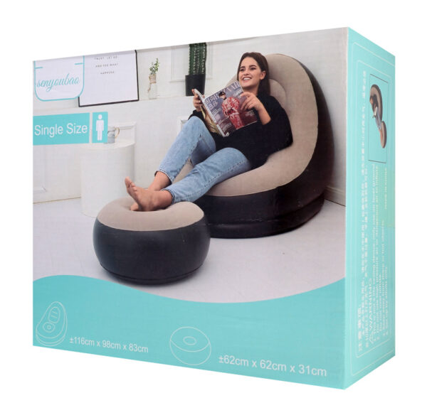Χαλαρώστε με άνεση και στυλ, με το σετ φουσκωτού καναπέ και σκαμπό της HOME USE. Ο εργονομικός σχεδιασμός του καναπέ προσφέρει άνετη στήριξη στο σώμα ενώ το σκαμπό σας επιτρέπει να ξεκουράζετε τα πόδια ή να το χρησιμοποιείτε σαν βοηθητικό κάθισμα.