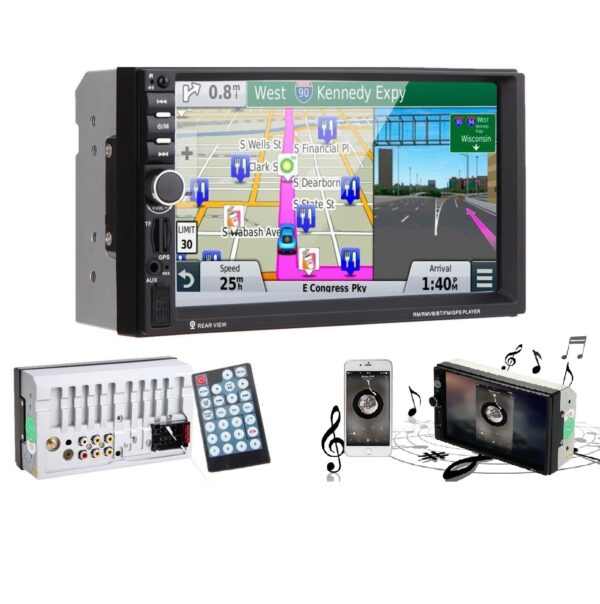 Ψηφιακή οθόνη 7 ιντσών TFT Δεν διαθέτει GPS Θύρες για microSD και USB 2.0 Ανάλυση 1080P 2DIN Υποστηρίζει την αναπαραγωγή αρχείων ήχου MP3/WMA/WAV/MKV/FLAC/OGG/APE Υποστηρίζει την αναπαραγωγή αρχείων βίντεο RM/RMVB/VOB/DAT/MP1/MP2/DIVX/XVID/MP4/H263/H264/FLV/3GP/SWF/AVI/ASF/MJPEG ect Ενισχυτής MOSFET 60Wx4 (Μέγιστη ισχύς) Εύρος συχνοτήτων ραδιοφώνου FM: 87,5MHz – 108.00MHz Στερεοφωνικό ραδιόφωνο με αυτόματη εύρεση και αποθήκευση συχνοτήτων Περιέχει τηλεχειριστήριο Ρολόι Αθόρυβη λειτουργία Bluetooth Bass & Treble,L & R channel stabilizer AUX IN Function Διαθέτει υποδοχή για κάμερα οπισθοπορίας Διαστάσεις (mm) : 178*100*56 Βάρος: 0.82 KG