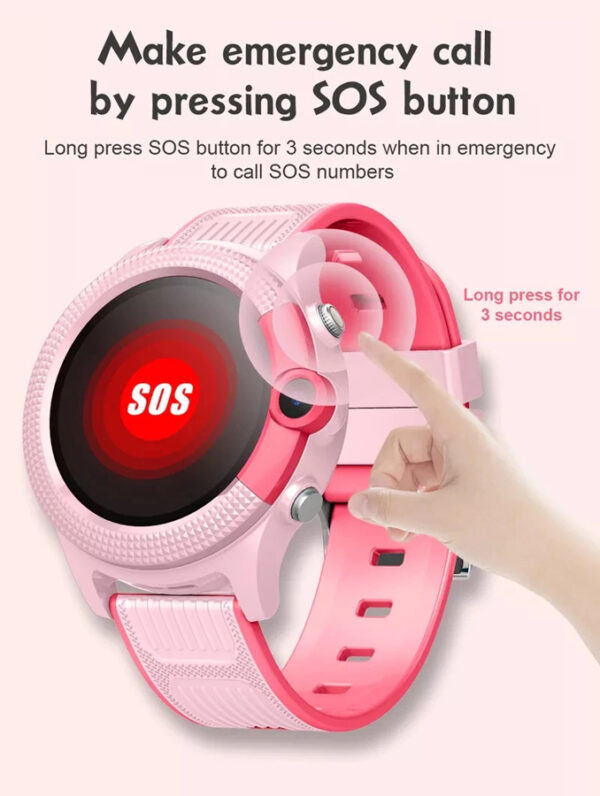 Εξοπλίζεται με έγχρωμη οθόνη αφής 1.28" και κάμερα 0.3 MP. Υποστηρίζει τηλεφωνικές κλήσεις ή βιντεοκλήσεις με δίκτυο 4G (με τη χρήση Nano SIM κάρτας) και διαθέτει και κουμπί για κλήσεις SOS σε περιπτώσεις έκτακτης ανάγκης.