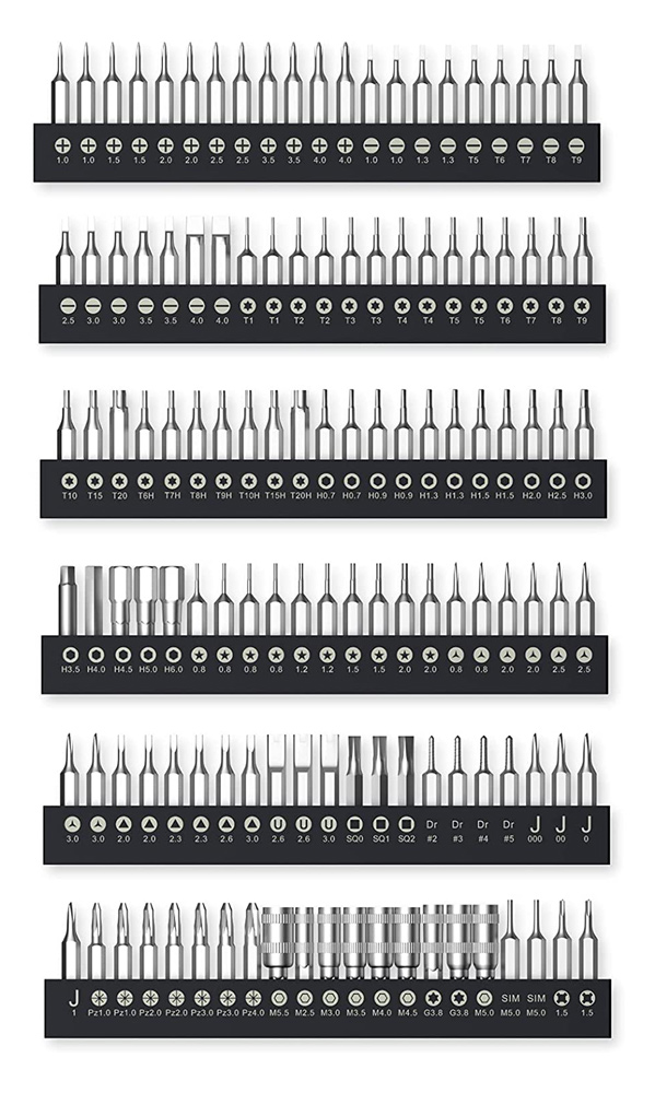 Tri-wing: 2x Y0.8, 2x Y2.0, 2x Y2.5, 2x Y3.0