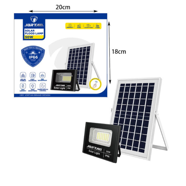 Jortan Ηλιακός Προβολέας Με Τηλεχειριστήριο LED 50W IP66- Solar Flood Lamp
