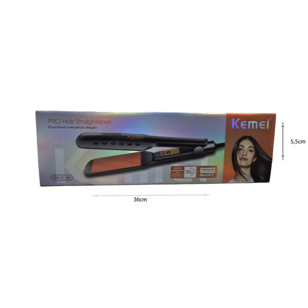 Η πρέσα της Kemei έχει φαρδιές πλάκες για να κάνετε styling σε πιο πυκνές τούφες μαλλιών, εύκολα και γρήγορα. Συνήθως προτείνεται η χρήση τους για πυκνά και μακριά μαλλιά.
