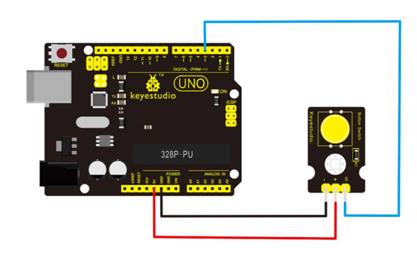 Digital push button της Keyestudio. Είναι συμβατό με Arduino και μπορεί να συνδεθεί εύκολα σε μια IO shield.