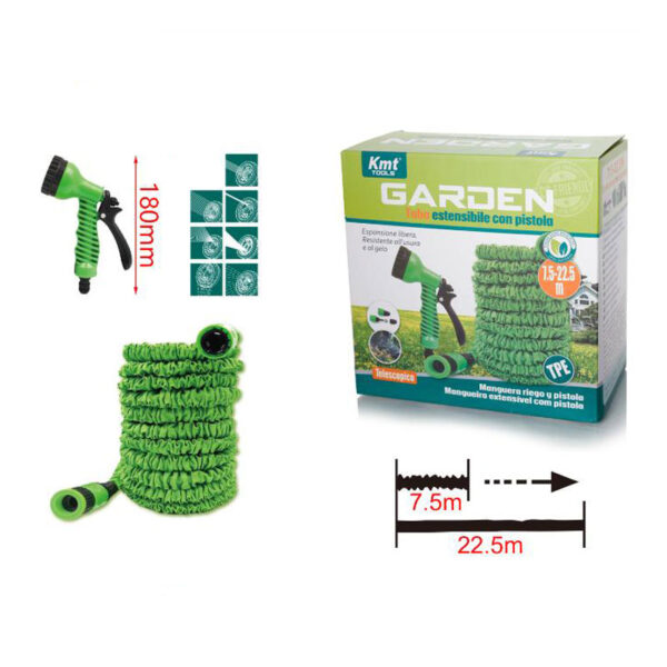 Επεκτεινόμενο Λάστιχο Ποτίσματος 7.5-22.5 Μέτρα Με Πιστόλι Kmt Tools είναι ο πιο συχνά χρησιμοποιούμενος εξοπλισμός κήπου , ο οποίος δεν είναι μόνο χρήσιμος στον κήπο , αλλά και σε άλλες δραστηριότητες , όπως πλύσιμο αυτοκινήτων, πλύσιμο χαλιών , καθαρισμός αποχετεύσεων κ.λπ.