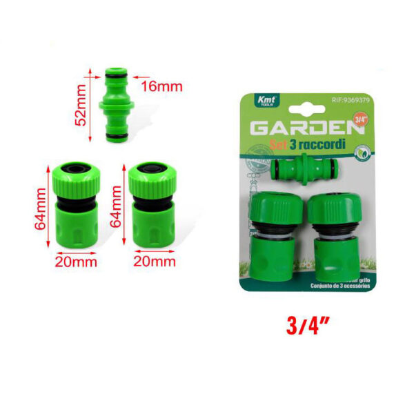 Σετ Ρακόρ Ποτίσματος 3/4″ 3 Τεμάχια απαραίτητο Σετ για την τοποθέτηση του σωλήνα του κήπου σας στην παροχή νερού!!